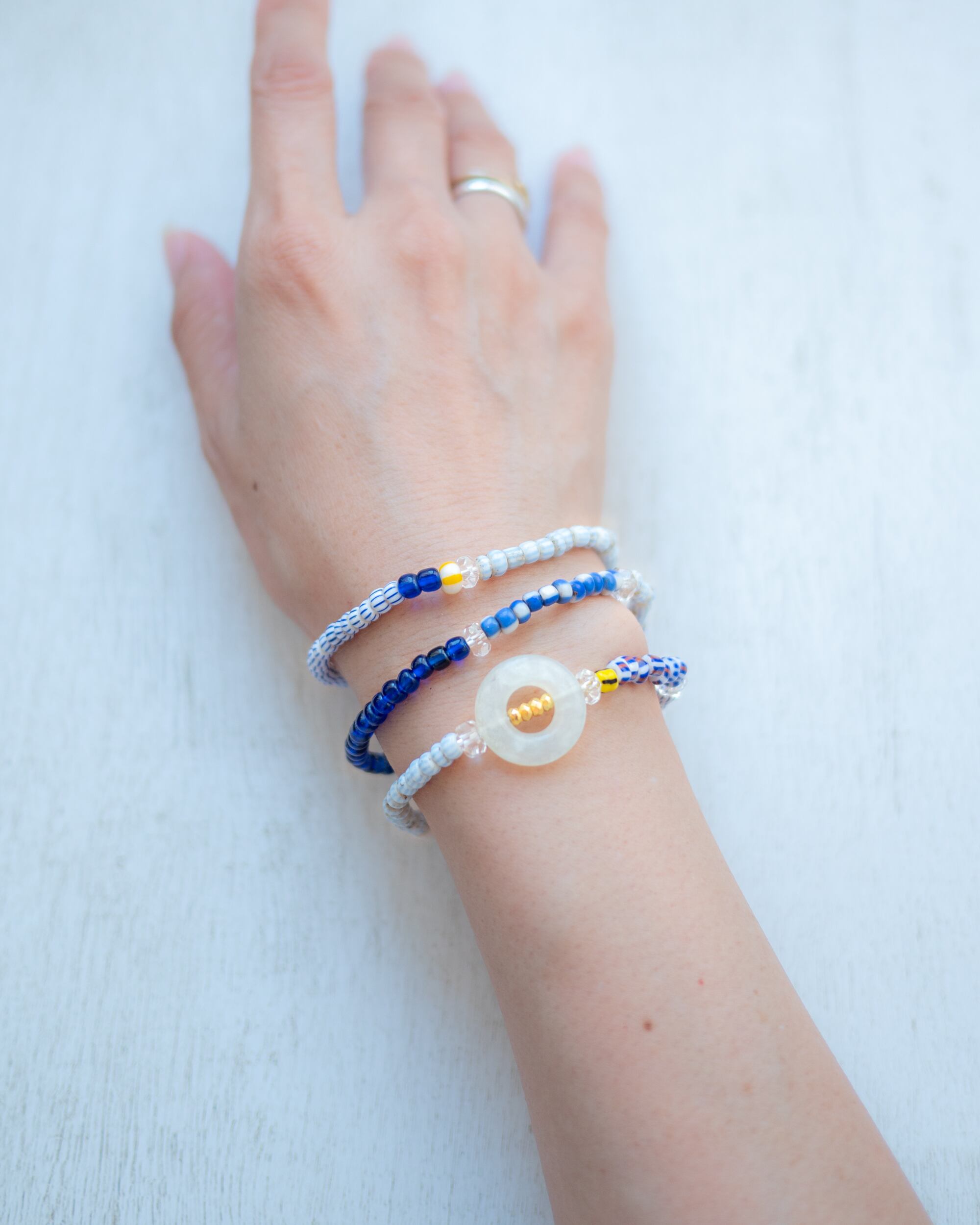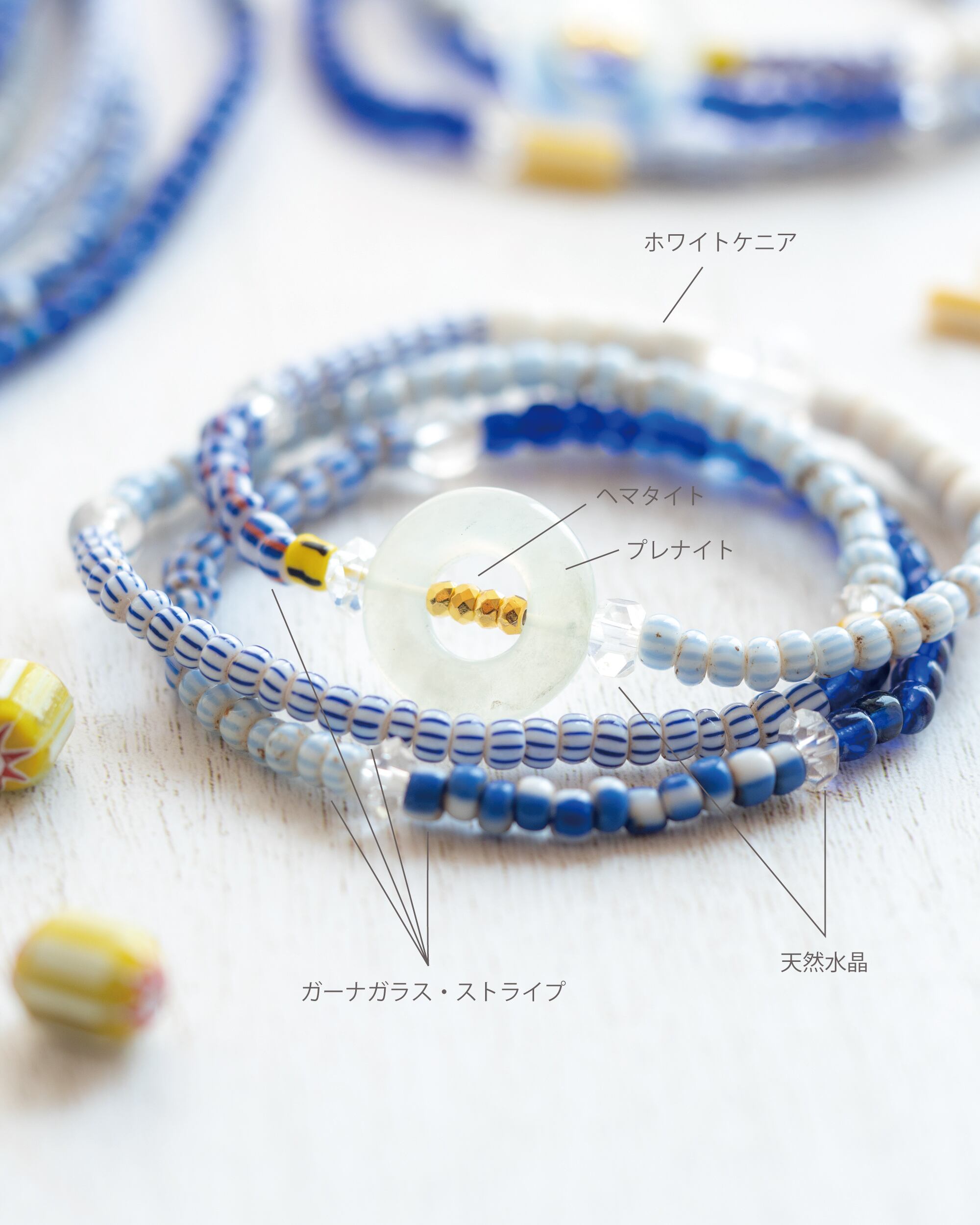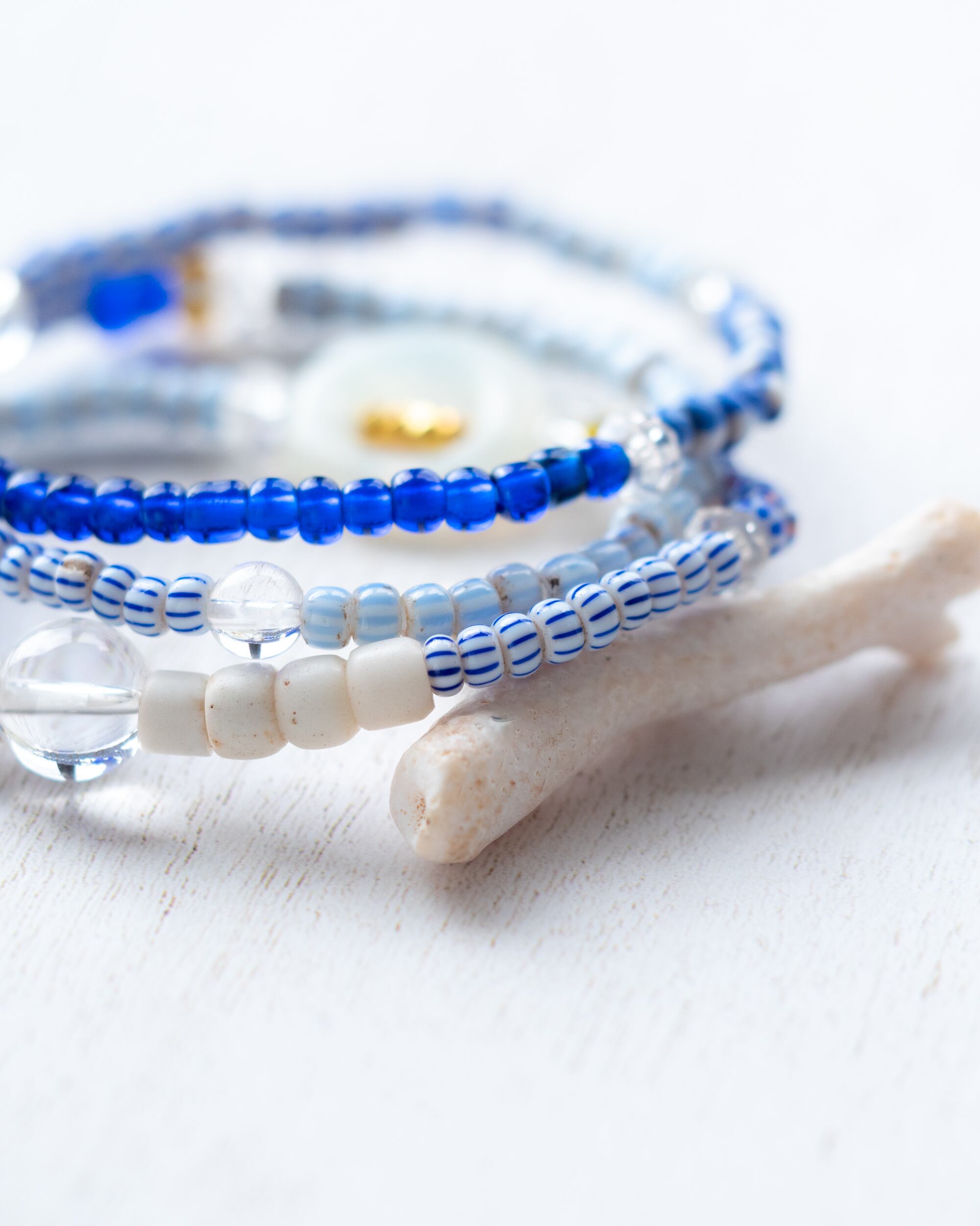 【そらうみ】アンティークアフリカンビーズと天然石の3連ブレス/B206-1