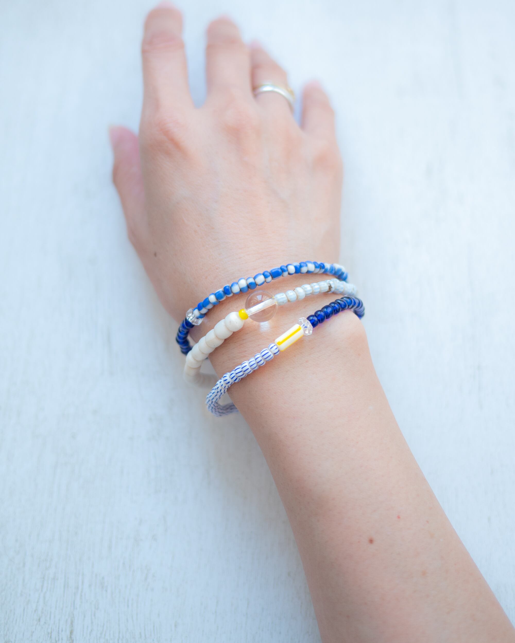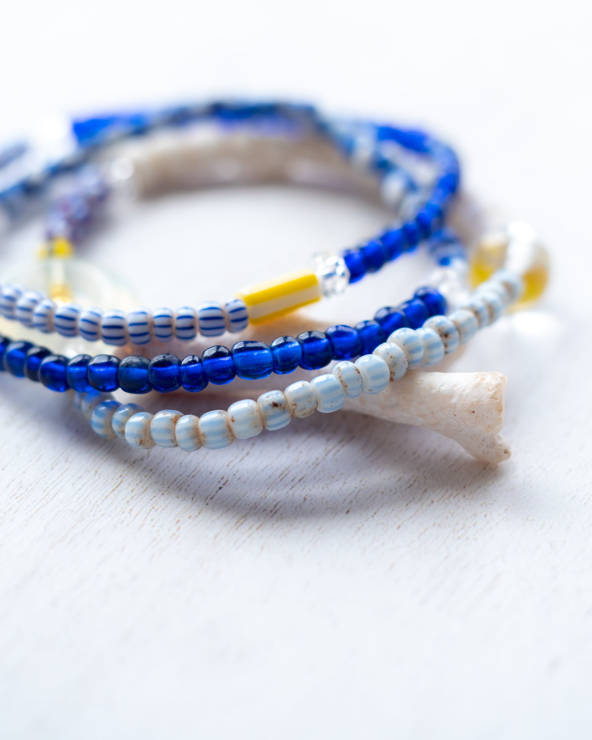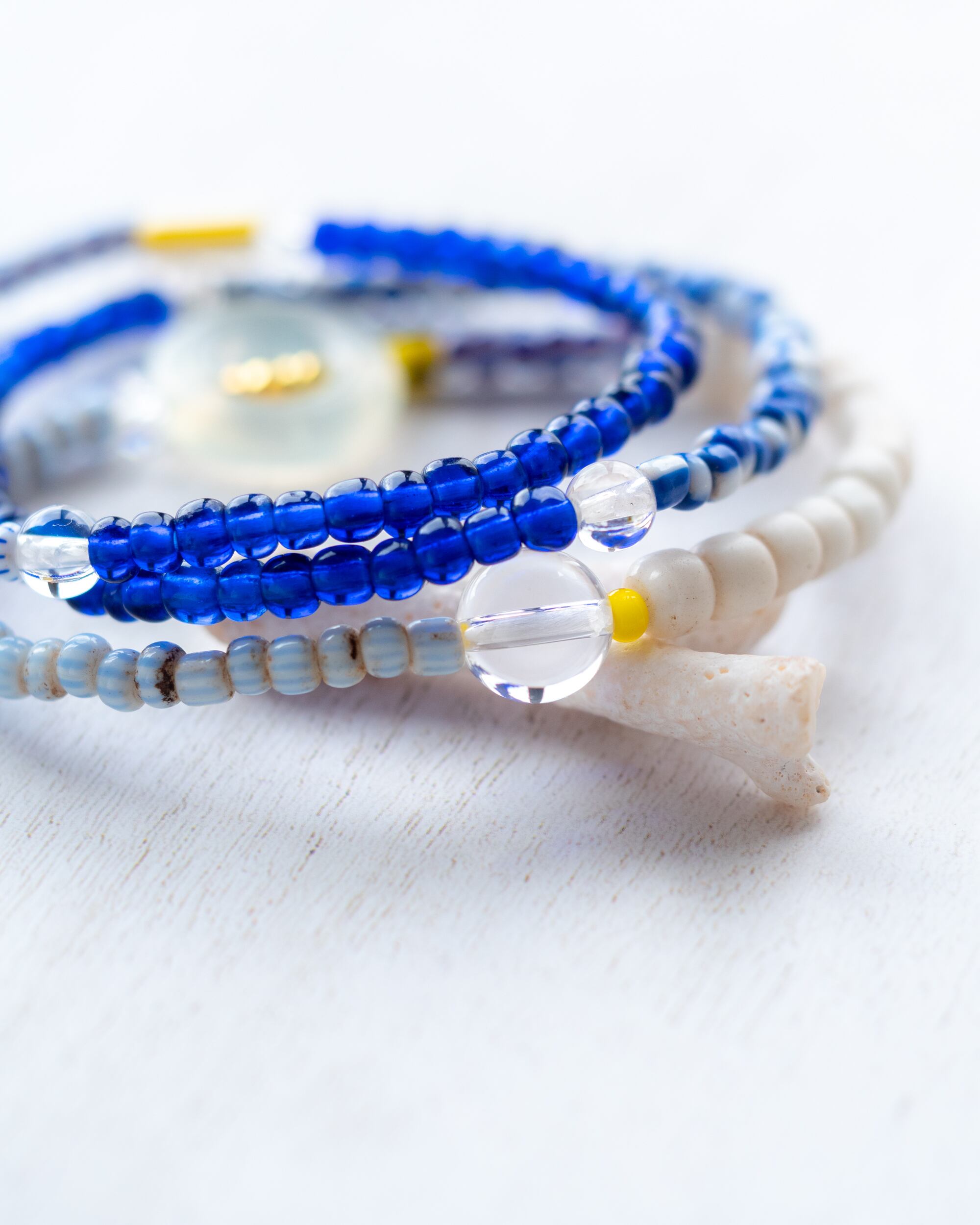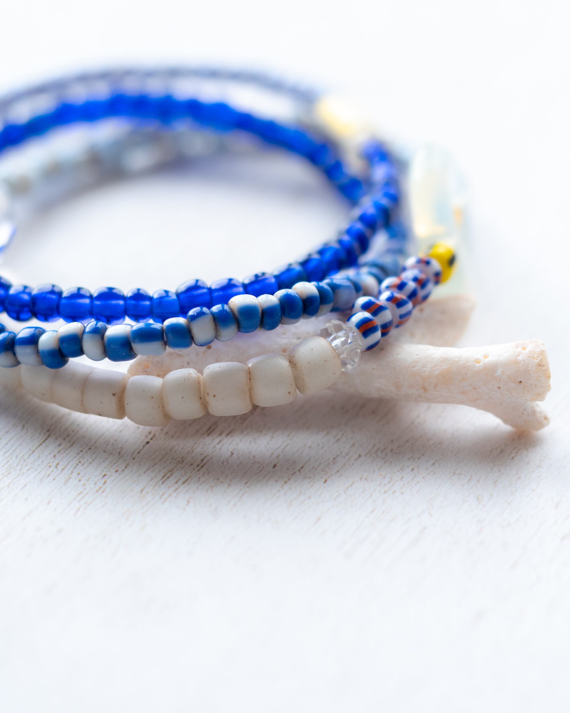 爽やかなブルーや白のオールドビーズに