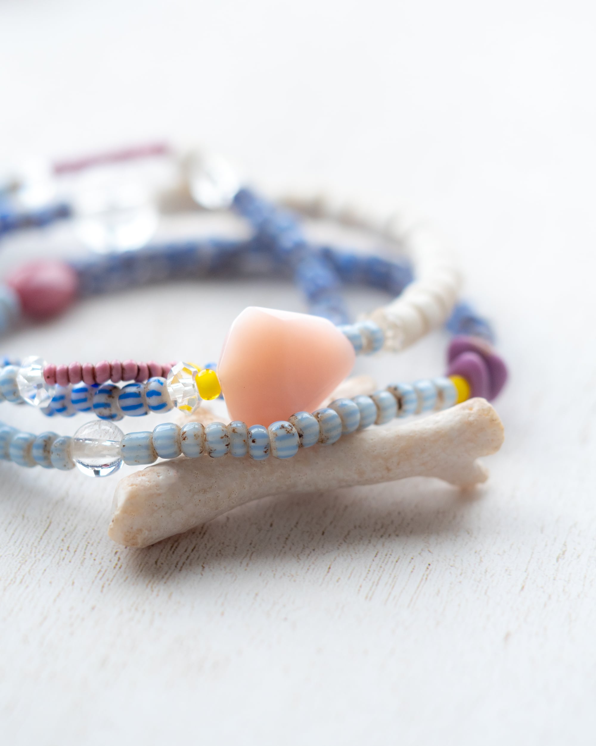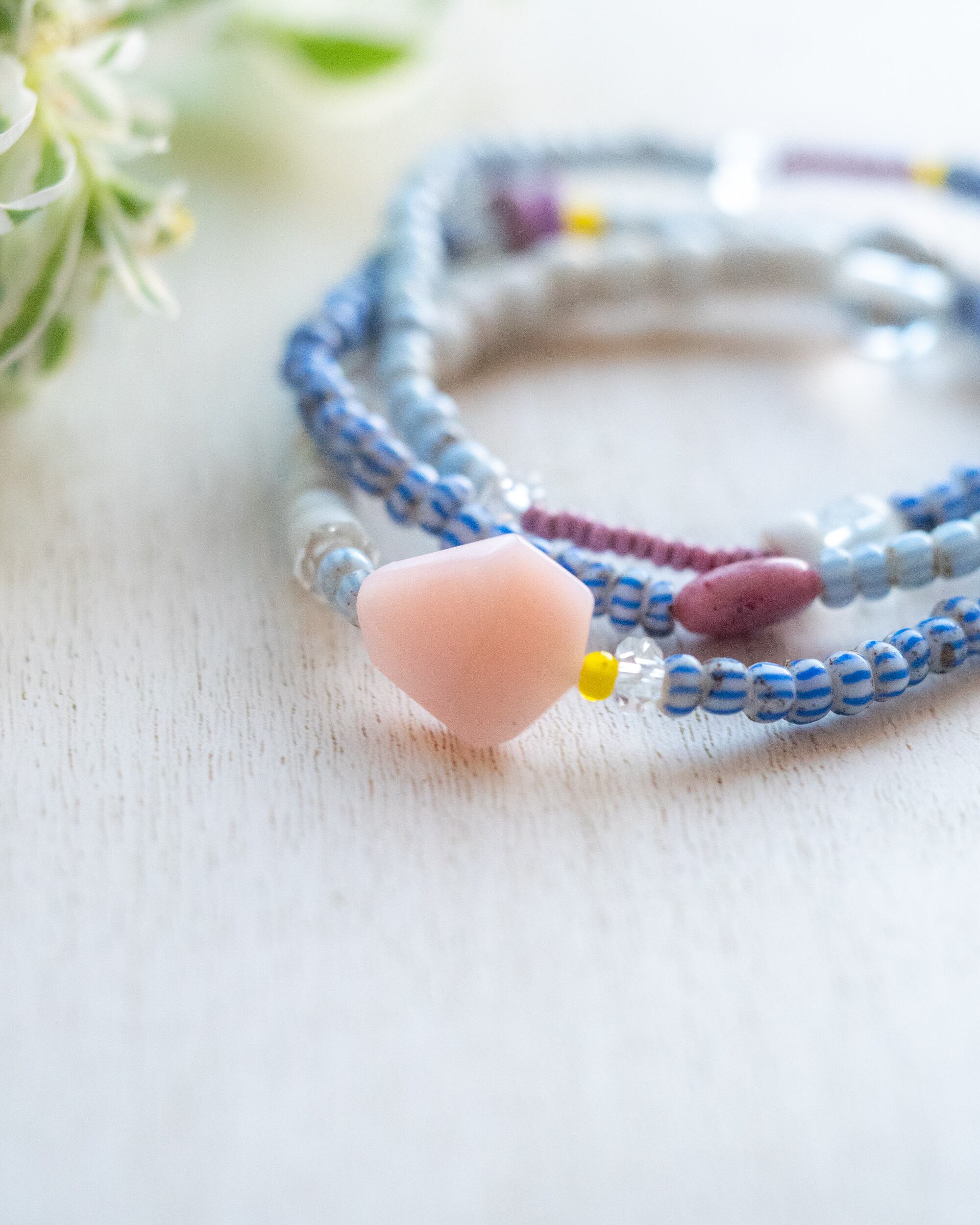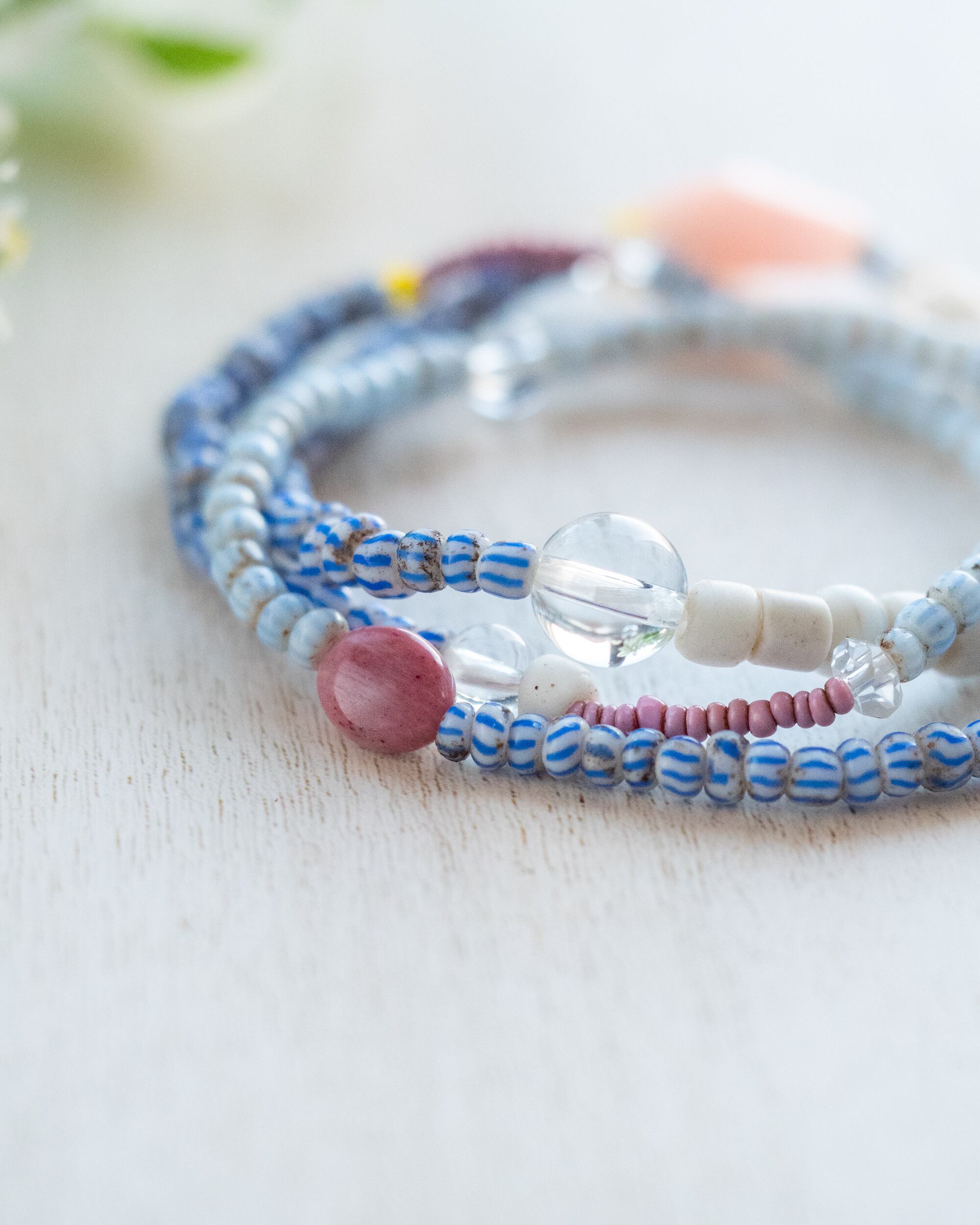 【そらうみ】アンティークアフリカンビーズと天然石の3連ブレス/B206-3