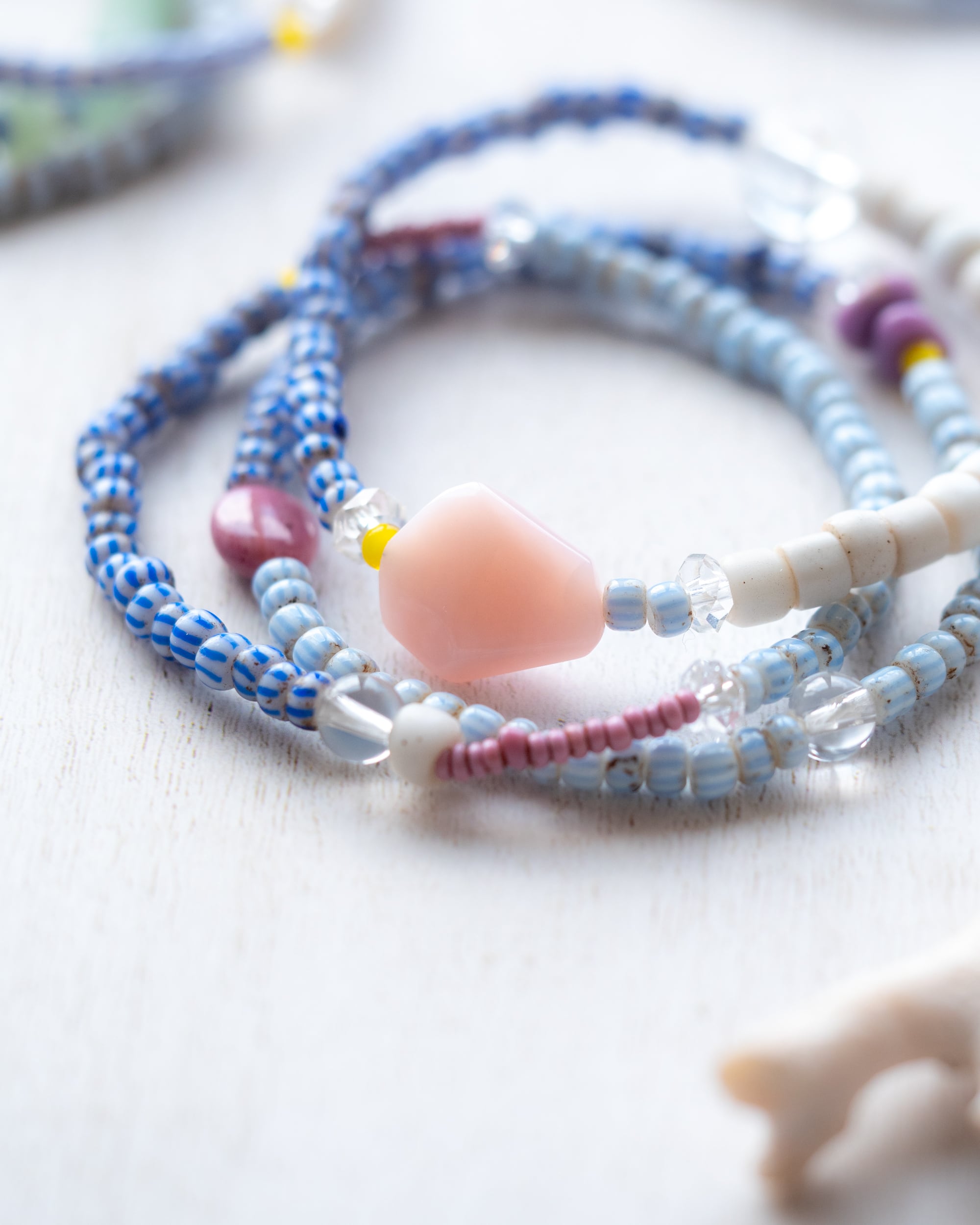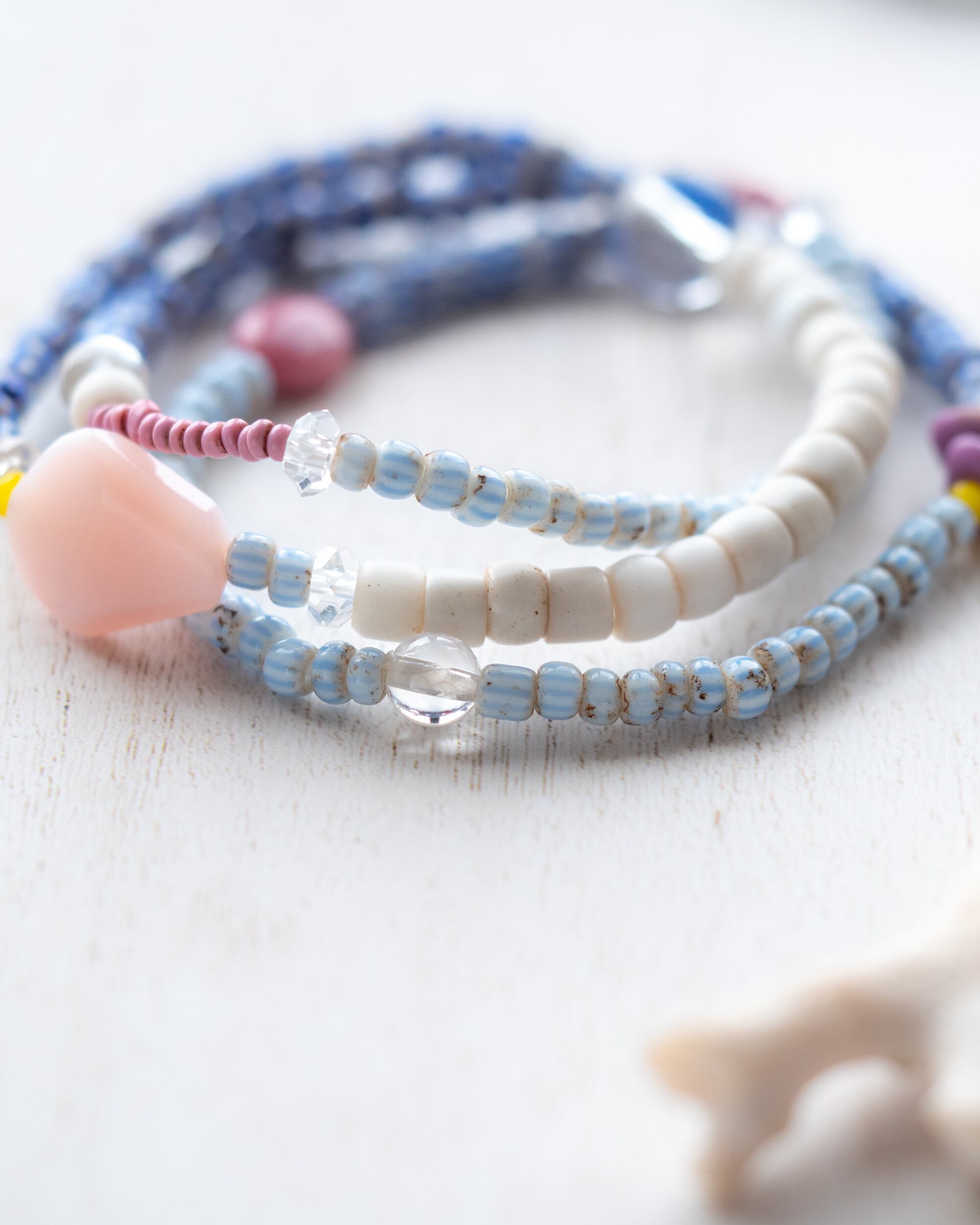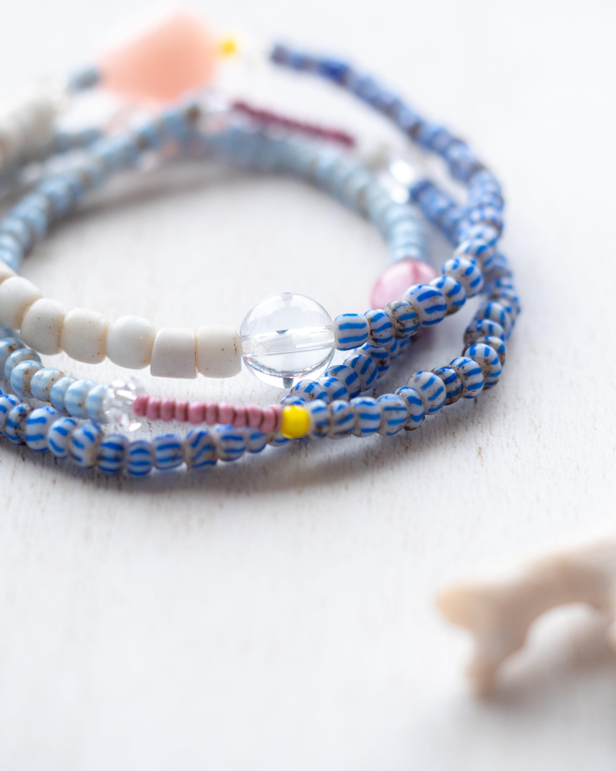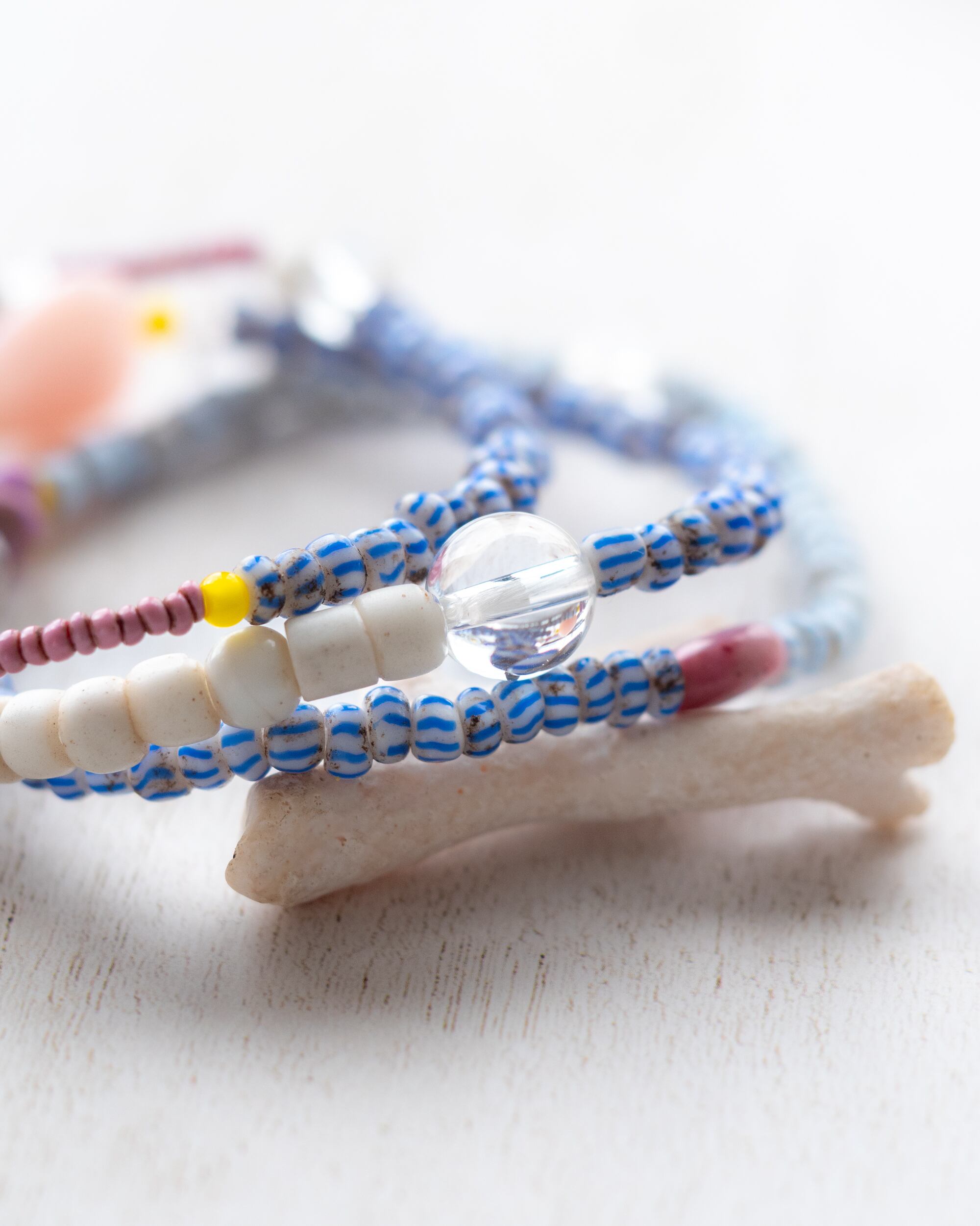 爽やかなブルーや白のオールドビーズに