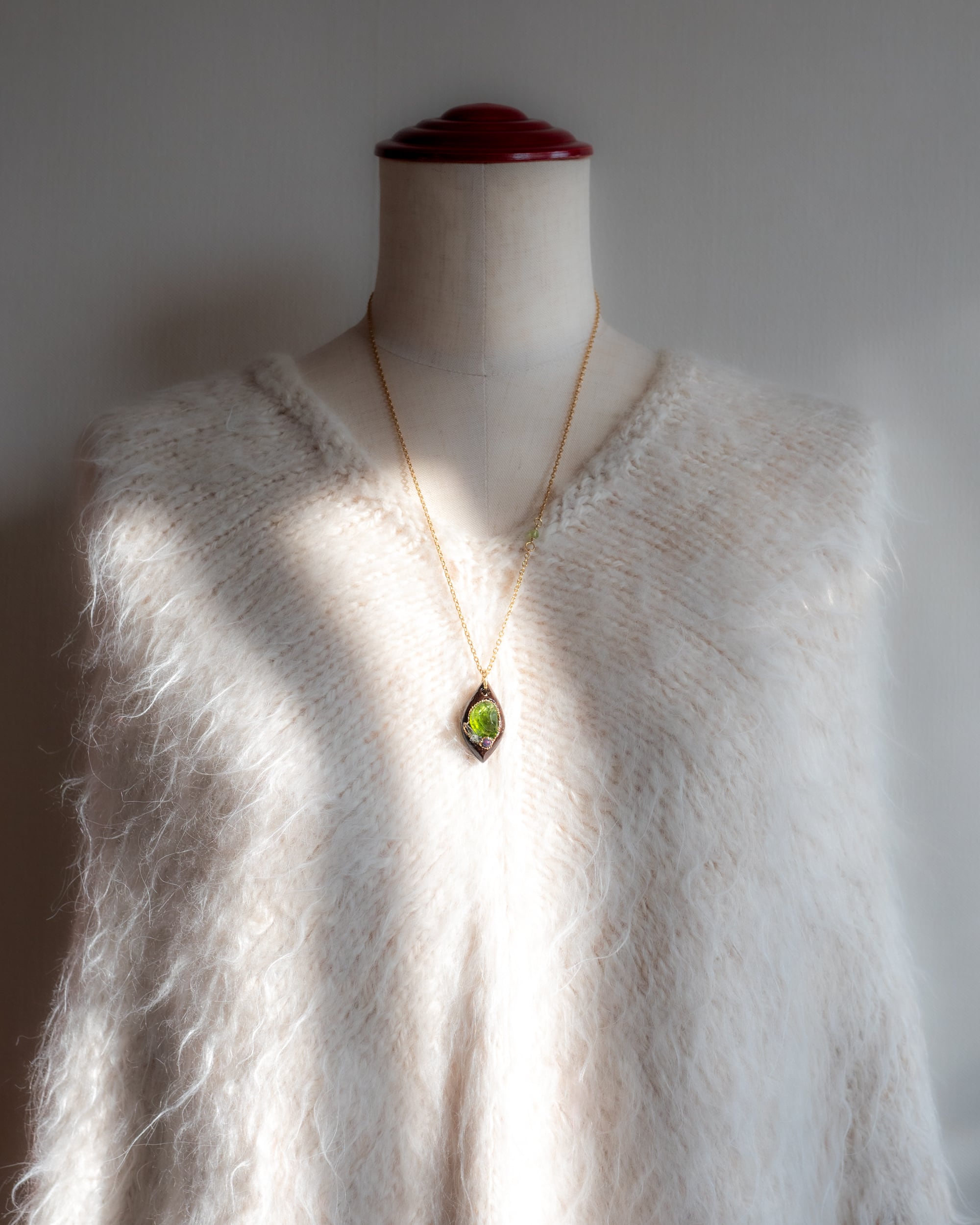 琥珀色の橄欖石が 星の結晶のように静かに煌めいています。