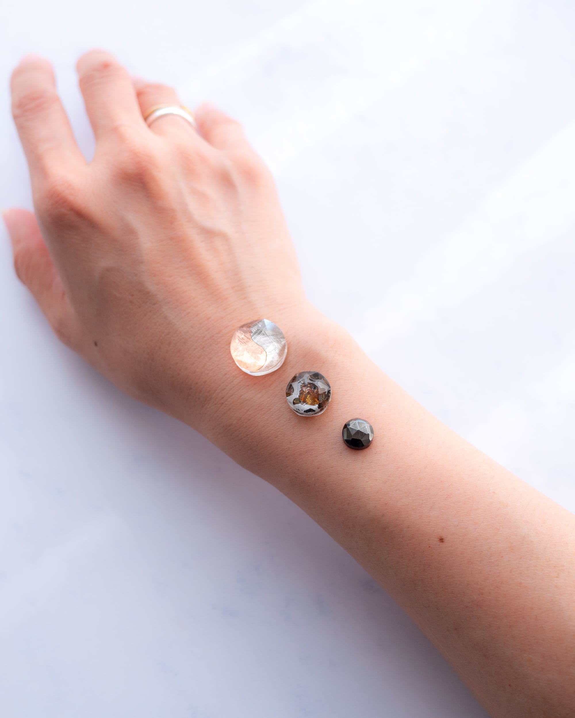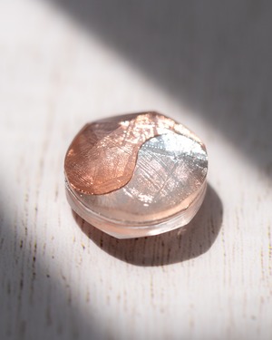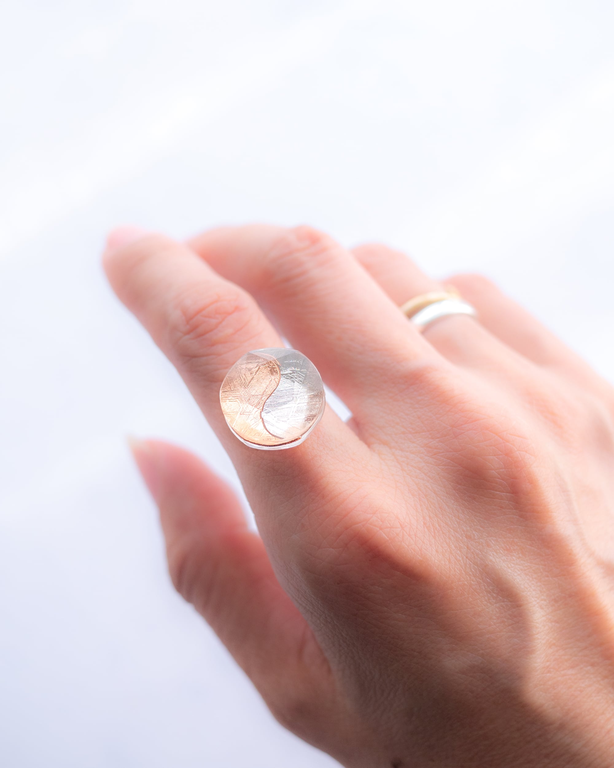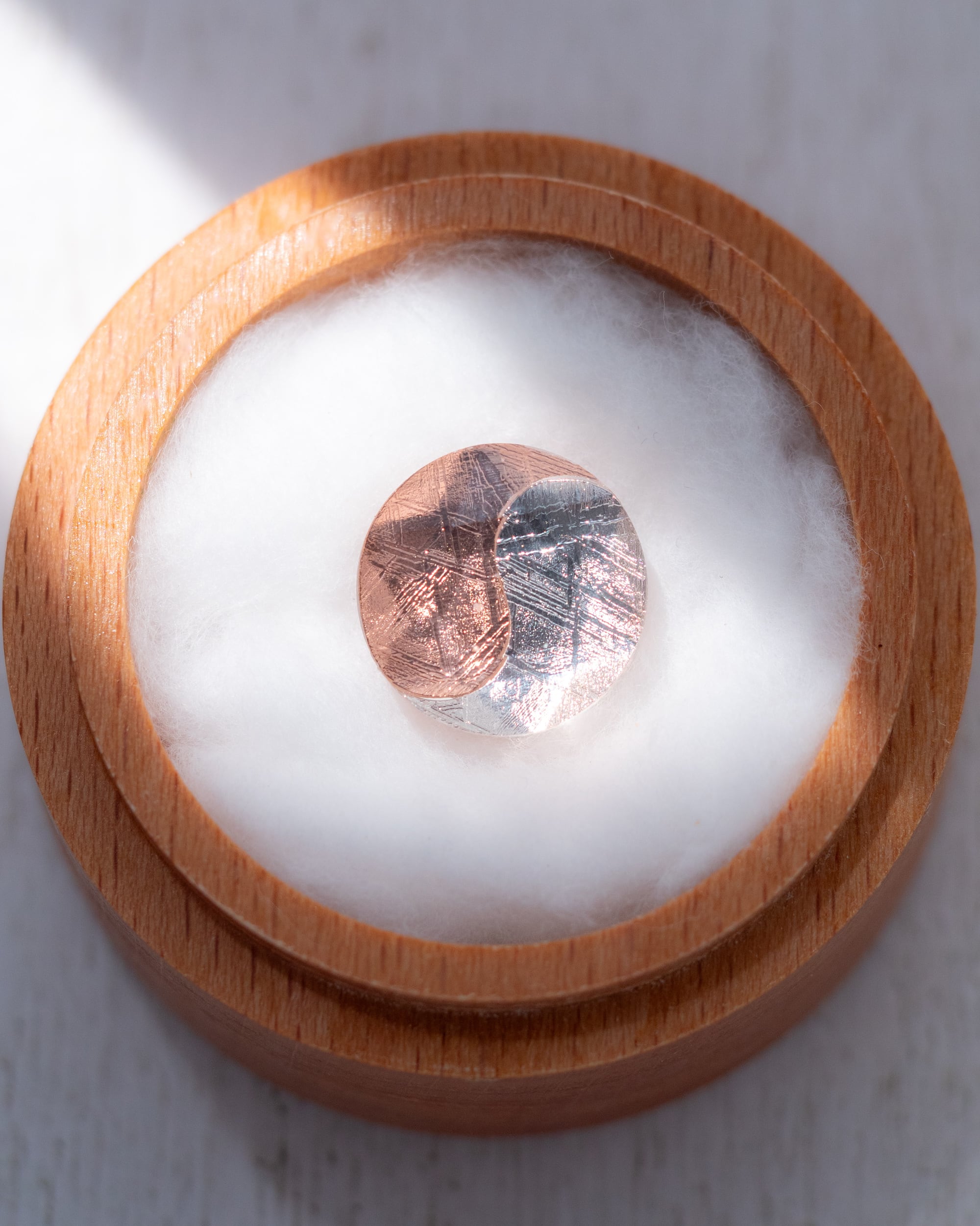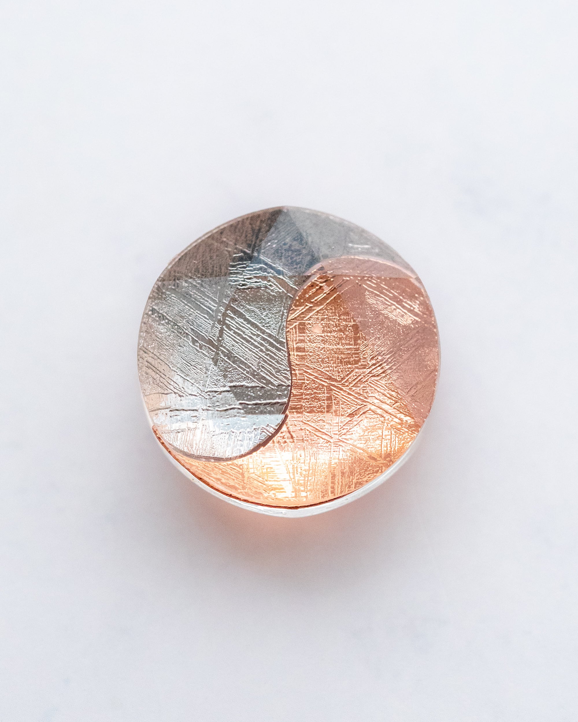 ムオニナルスタ隕石のシルバーとピンクゴールドで描かれた 陰陽太極図のピース。