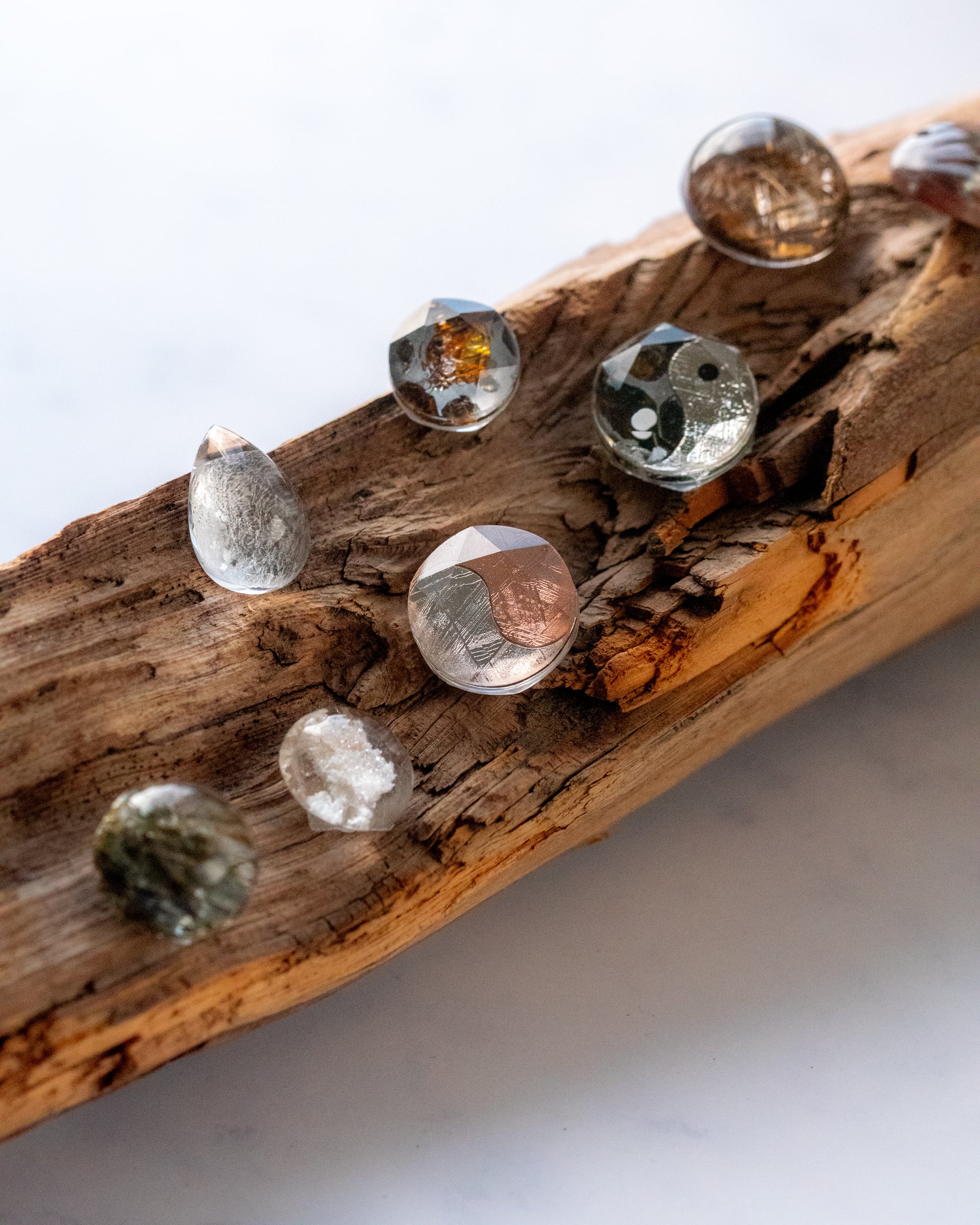 表面に六芒星カットのクリスタルガラスが重なり