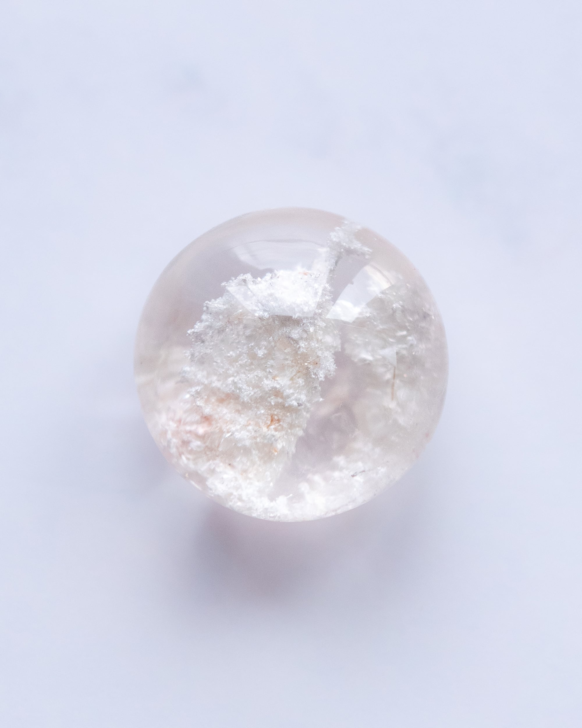 透き通ったクォーツの中に 真っ白な雲母が内包された ホワイトガーデンクォーツのピース。