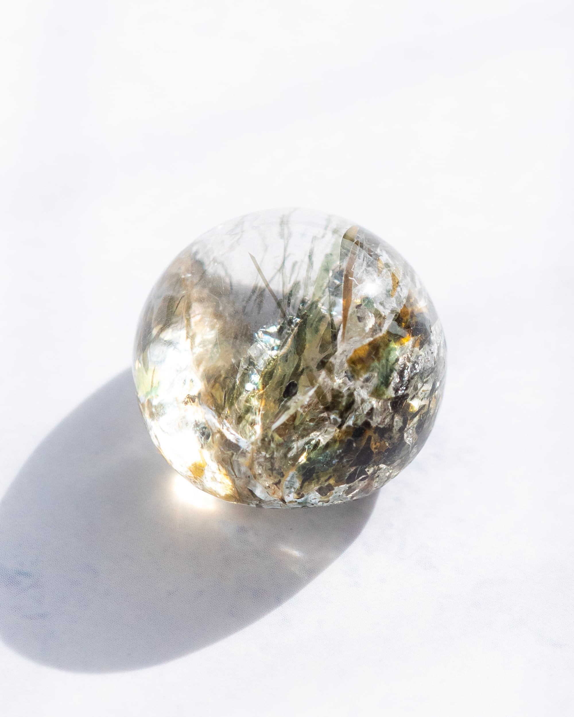 透き通ったクォーツの中に グリーンエピドートが無数に内包されたピース。
