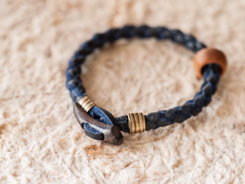 「ミサンガの御守り」から想を得た 本革と天然樹で作るブレスレット『六結び』。