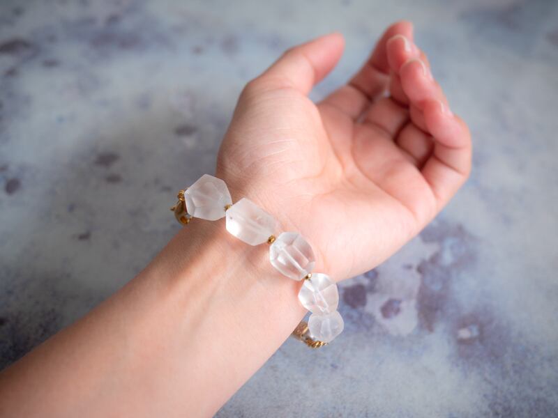 水のエレメントを多く含む屋久杉と合わせて クォーツだけのシンプルなブレスレットが誕生しました。