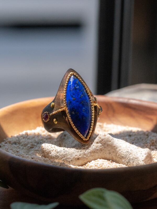 【叡智の青石】リング/ラピスラズリ×パロサント/R2020-007