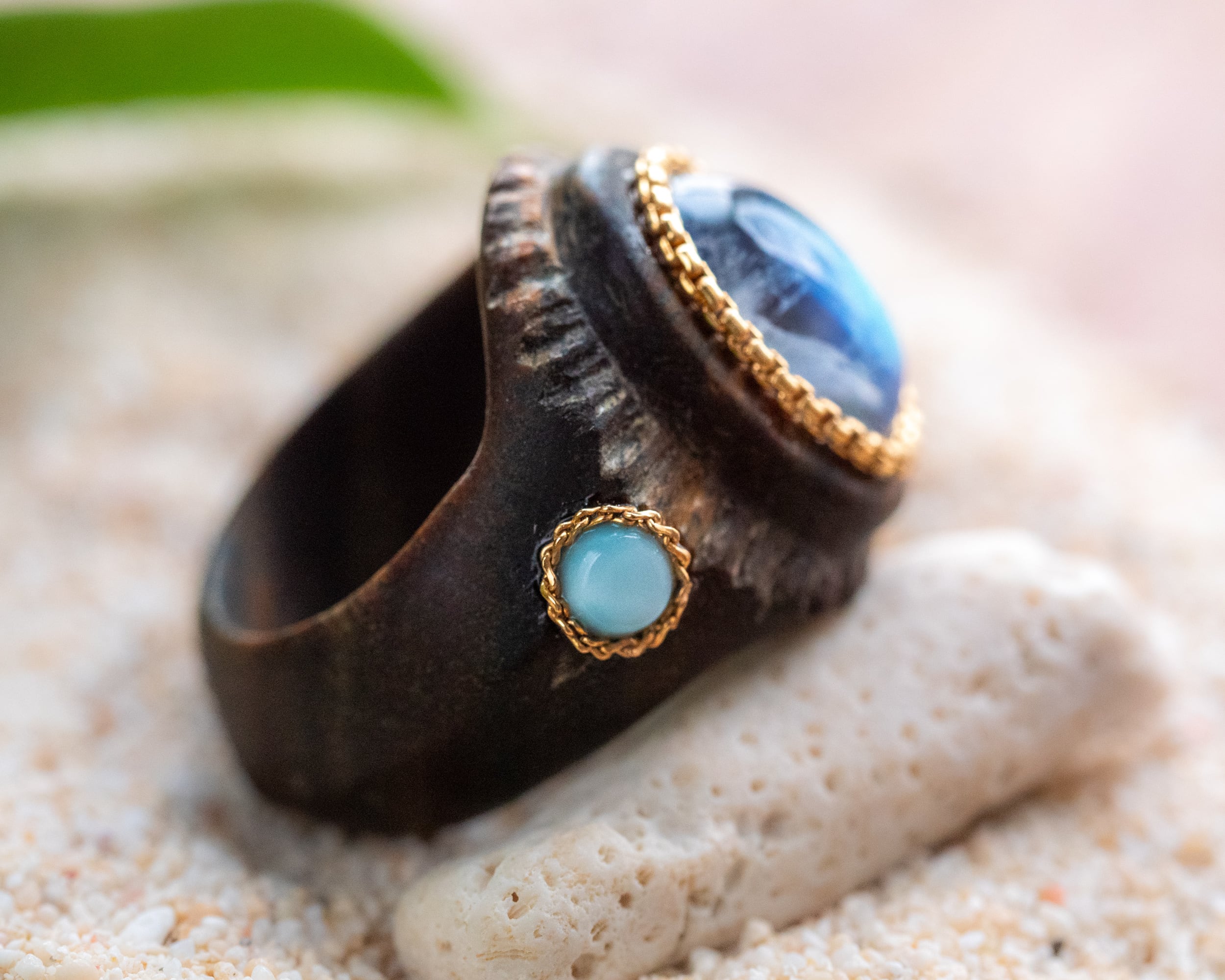 【kukunochi】ホワイトラブラドライト×パロサント[リング]R2020-009