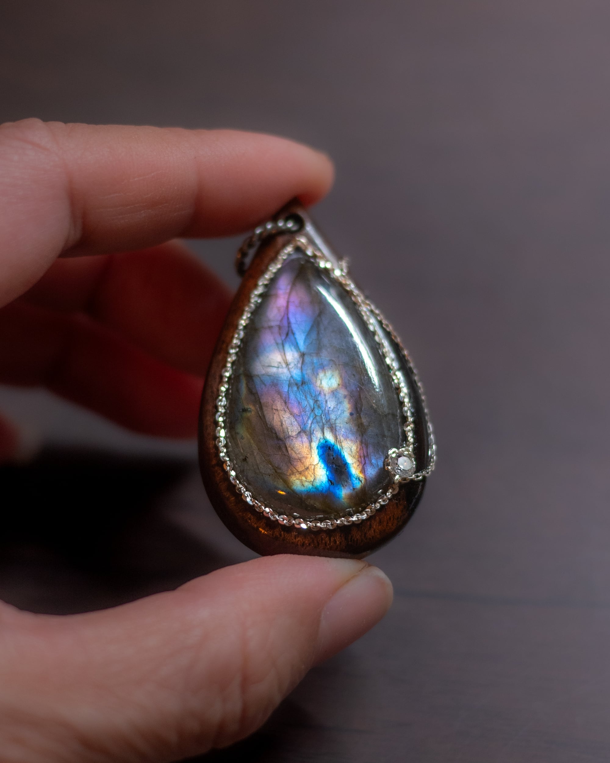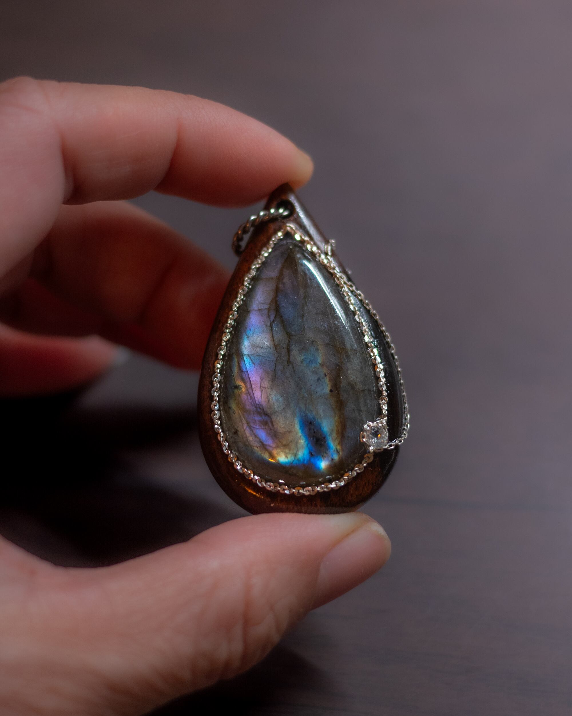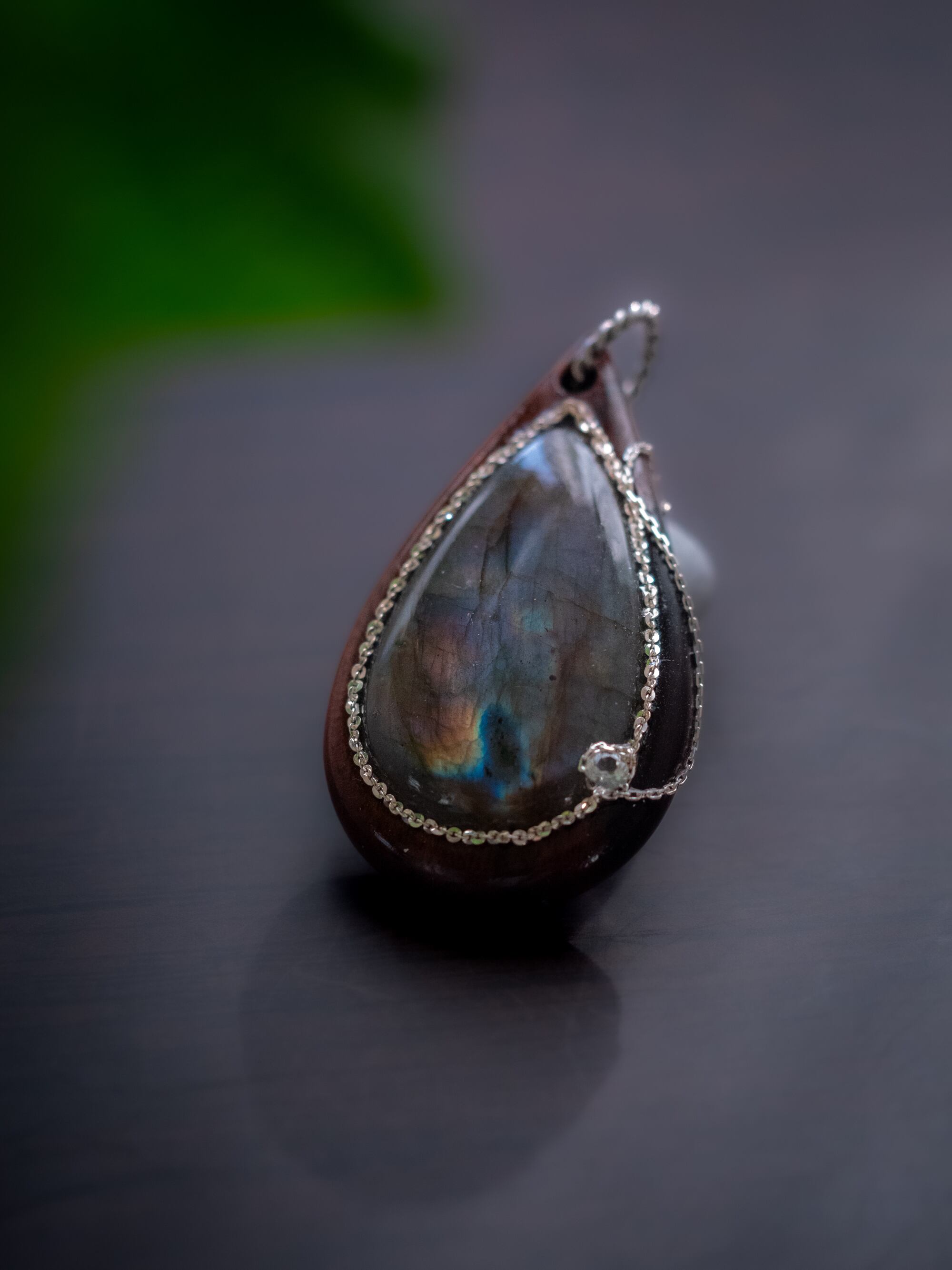 【Northern Lights】ラブラドライト×紫檀[ペンダントトップ]O600-25