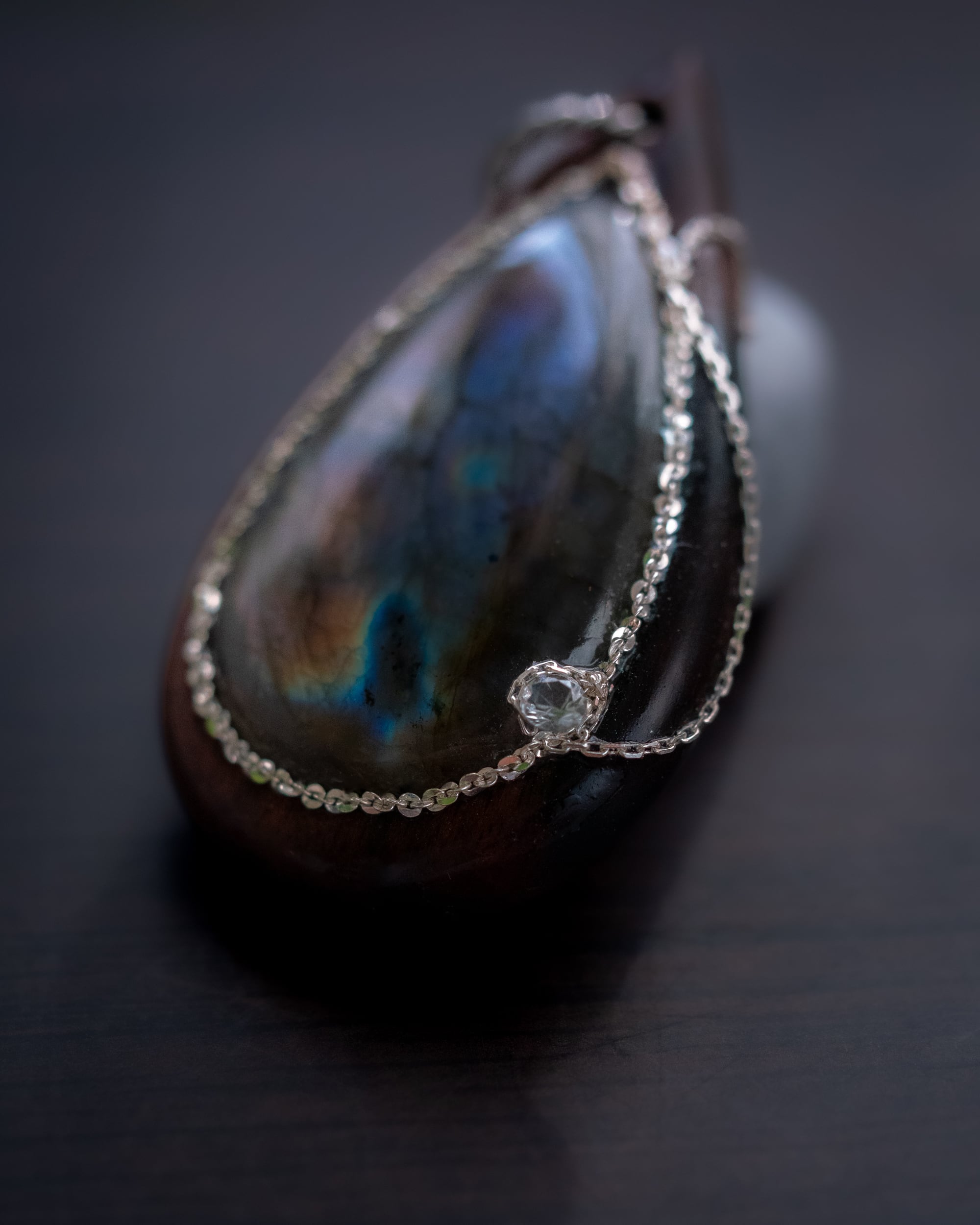 ■石繋ぎ:シンプルで合わせ易い石繋ぎのネックラインをご用意します。
